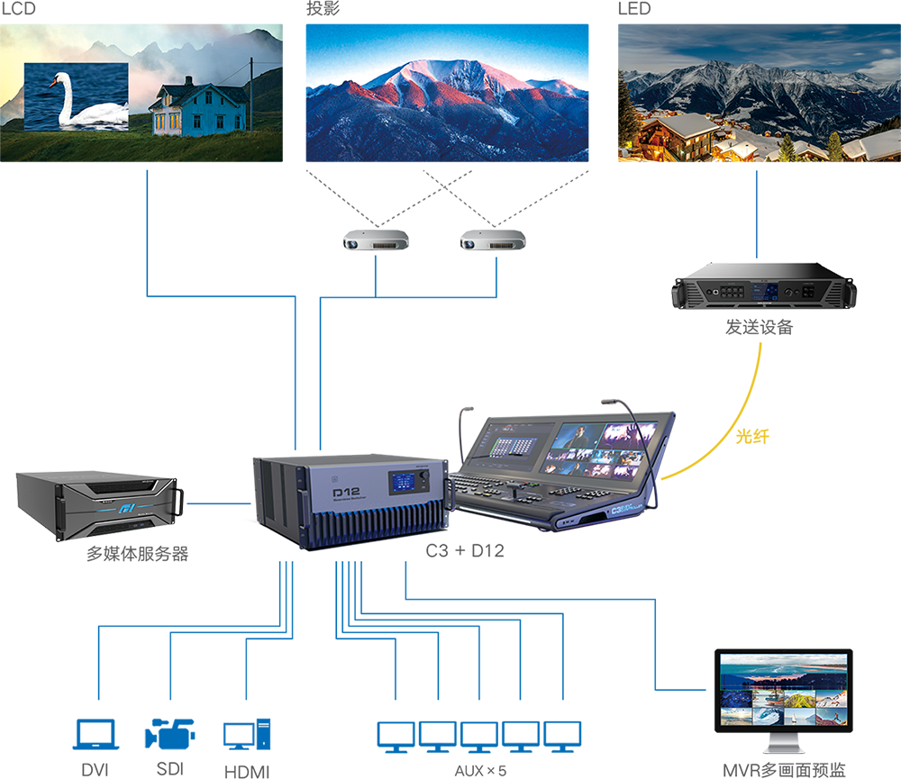 視頻控臺(tái)、無縫切換器、多畫面拼接處理器、視頻控制器、4K獨(dú)立主控、智能管理軟件等,強(qiáng)強(qiáng)聯(lián)手,高度集成,為您帶來極簡(jiǎn)的操作體驗(yàn),高清的視覺體驗(yàn),穩(wěn)定的控制體驗(yàn),是舞臺(tái)租賃的不二選擇。