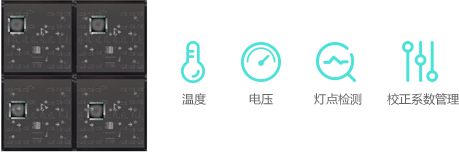 无需监控卡,通过微处理器即可实现模组级的温度、电压监控, 灯点检测,校正系数管理等。