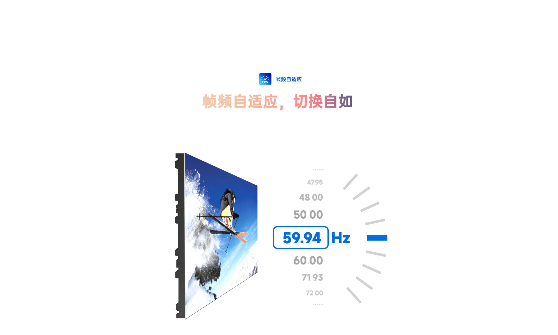 自动适配23.9Hz~240Hz不同帧频范围的视频输入,并支持自定义帧频,步进可达0.01Hz。