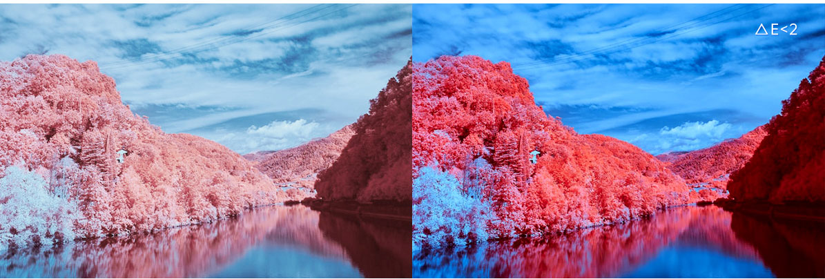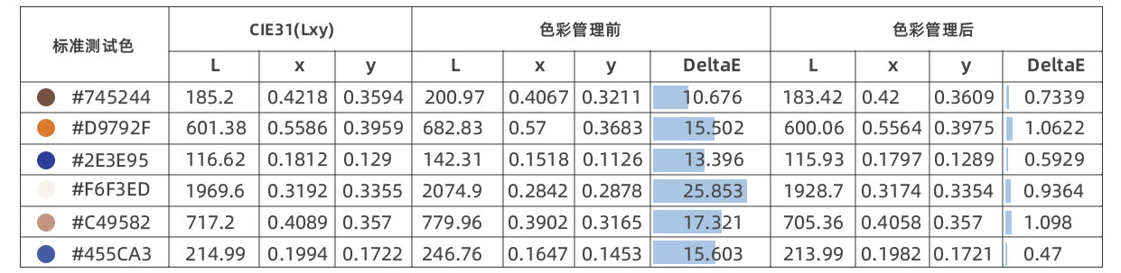 全自动色彩标定,校准及验证,自适应视频源色域,原彩级色准,ΔE<2。
